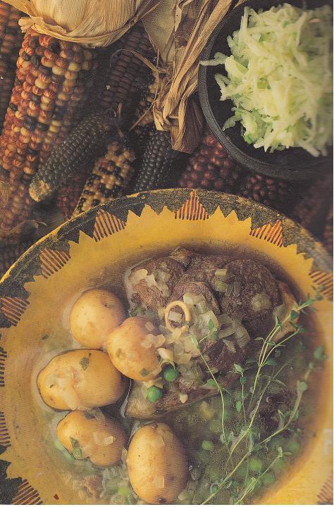 method: heat oil and brown off lamb, add onions and cook for a few minutes, add star anise, red masala, chilli, garlic and thyme. Pour on stock, cover and cook for 20 minutes, add potatoes cook for 20 mins, add peas and cook for 10 mins, season to taste and serve with rice and green apple sambal (juice 2 lemons, 4 hard green apples peeled, 2 garlic cloves crushed, half to one chilli finely chopped, grate apple into lemon juice, toss from time to time add rest ingredients and mix well – it compliments the dish so well – don’t  be tempted to leave it out!)1kg lamb shank, 3 onions finely chopped, 1 tsp star anise, 1 tspn red masala curry paste, 2 green chillies (the recipe says 5 but I find that too hot!), 5 garlic cloves, some sprigs of fresh thyme, 1 litre lamb stock, 1lb new pots or large ones diced, 1lb peas, salt and pepper to taste