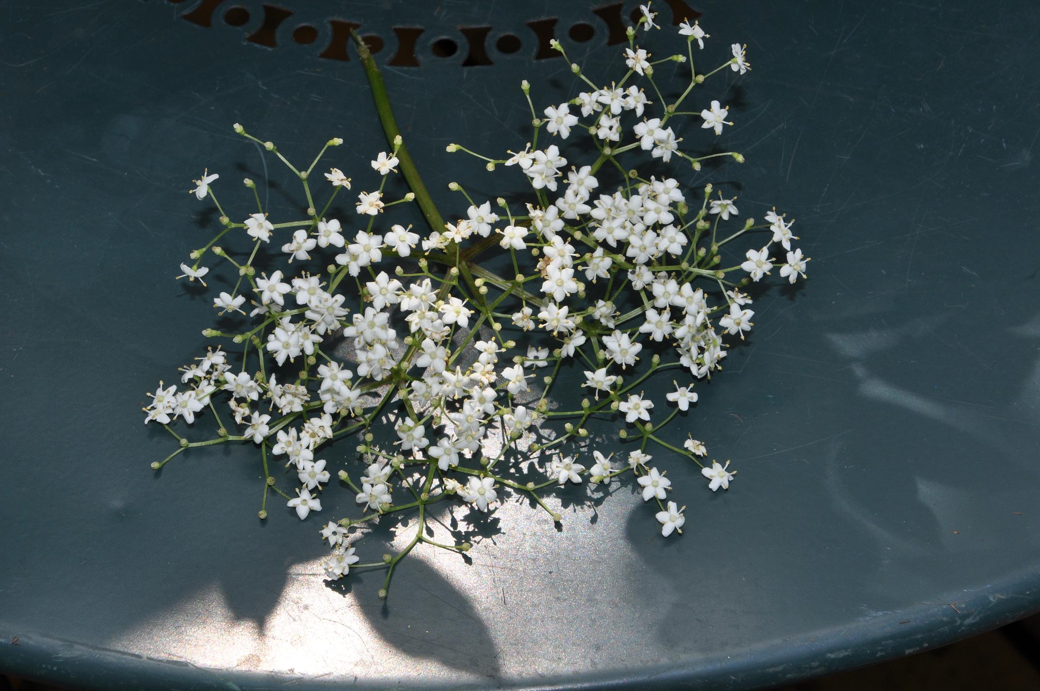 6 heads of elderflower at their optimum blooming point