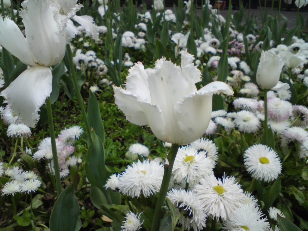 tulips and daisy white