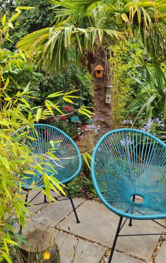 Big plants, bespoke items, different textures and bringing the plants close to the house and seating areas, all contribute to the overall success in creating this urban garden, making it feel unique to its owners, individual in design and a tranquil and relaxing space to enjoy all year round.